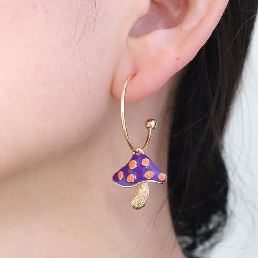 Grace1451 Mushroom C-shaped earrings Hand-painted enamel